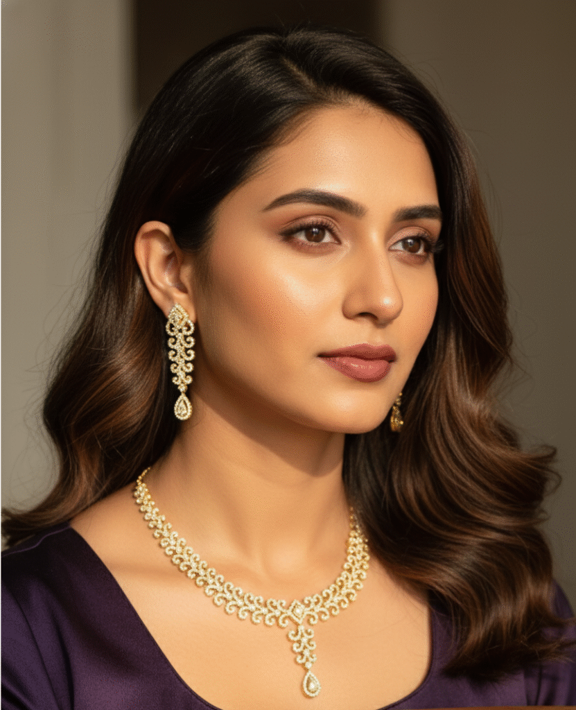Elegant American Diamond Necklace Set with Matching Earrings + Suprise Gift