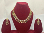 Perfect for weddings, parties, and festive occasions, the set includes a statement necklace and matching drop earrings, all finished in rich gold plating for a timeless appeal.